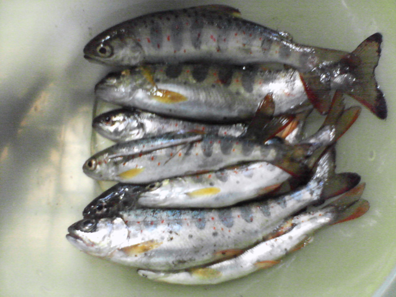 最近仕事が忙しかったので、この前の休みは近くの川でヤマメ狙いのルアーをやっていた。 淵に溜まっていると予想し少し速めのスピードでリトリーブする。 何度かキャストしたが、乗らず・・・。 すると・・・ 浅瀬のほうで50cmオーバーのコイが8~10匹泳いでいる!! ためしにルアー(スピナー)を投げてみたら興味を示して寄ってきた。 リールを巻くのをやめて、スピナーを底に落としてみたら、軽くくわえた。 けど、アワセまで至らず。 ルアーに反応を示したのがおもしろくなって、タックルに入ってあったエビの形したワーム(メバ用、月下美人)をつけて再びキャスト。これも口に入れたが、またフッキングせず・・・。 そしたらスレて、近くに寄っては来るが口に入れないようになった。 もうここまできたらお遊びモード、エギをキャストしてみた。でも海水と違って沈み方は変 ![]() シャクッてみると近寄ってはきたが、次にシャクリをいれた勢いにびっくりして逃げていった。 明日もコイのルアー釣り試してみよう。 ちなみに今の時期のコイはうまいらしい。一昔前(20年ほど)、潜りの名人がいて真冬の凍りつくような水のなかにふんどし一丁で入っていき、半冬眠中のコイを抱きかかえて捕っていたらしい。コイ好きな人がうわさを聞きつけその名人に頼むものだから(もちろんいくらかは包んでいたらしいが)、週に何回かは潜っていたらしい。超人的な体力の持ち主かというとそうでもなくて、普通の体系のおっさん。どうやって体を温めるか師匠が尋ねたら、なんとコップ1杯の醤油を飲んで飛び込んでいたということだ・・・。その名人に何度か「一緒に潜ろう。」と師匠も誘われたらしいが、もちろんすぐに断ったようだ。 PR