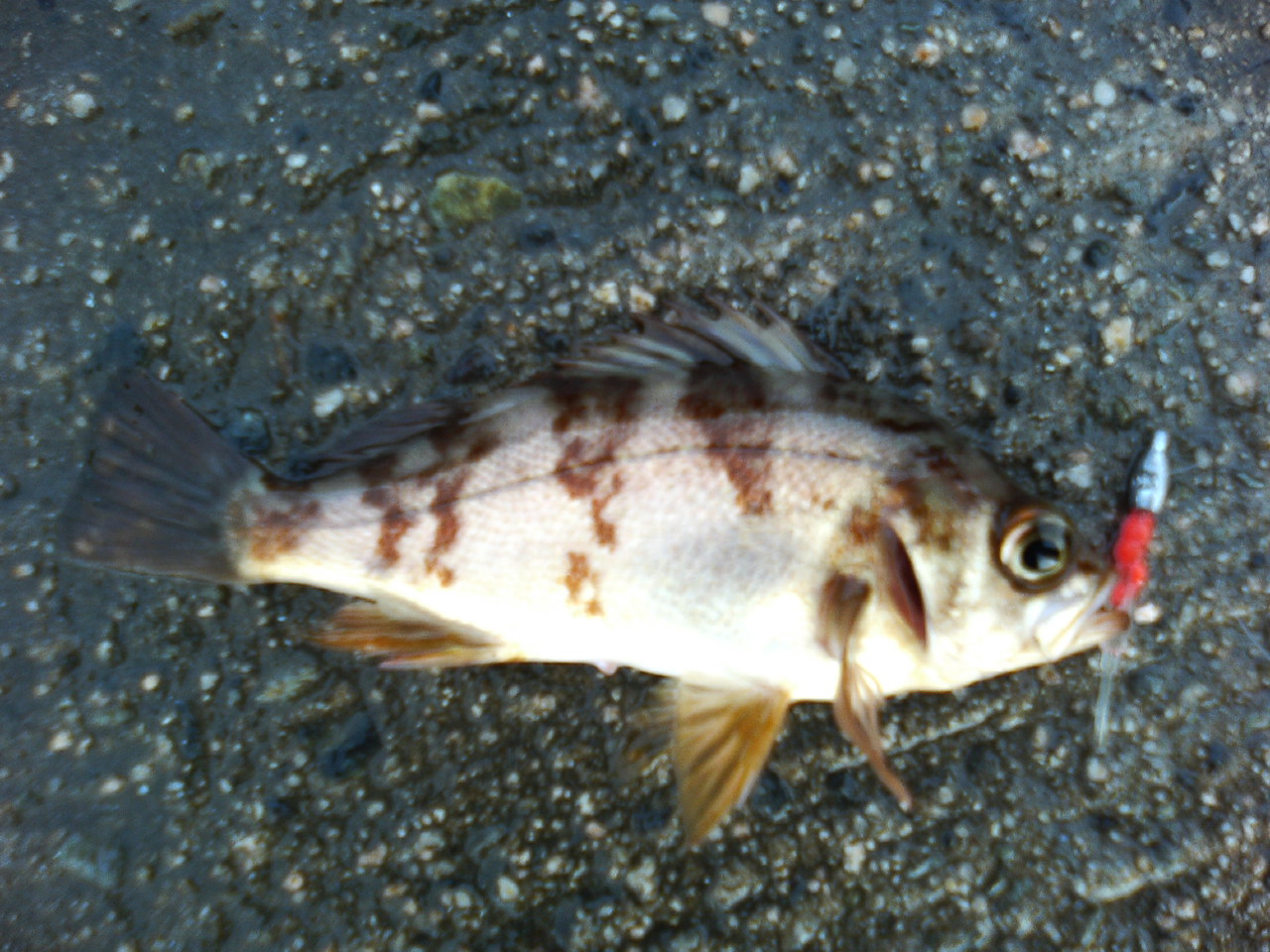 × [PR]上記の広告は3ヶ月以上新規記事投稿のないブログに表示されています。新しい記事を書く事で広告が消えます。 今年もあと1ヶ月をきった。釣り場に着いたら雨がザーザーだったので車内でテレビを見ながら雨があがるのを待った。ニュースで今年の流行語大賞をやっていた。「イナバウアー」「品格」「ハンカチ王子」などが選ばれていた。「メタボリックシンドローム」、肥満や高血圧が原因で発症するらしいが、ムーは当分は関係なさそうである。ムーは低血圧らしい。今日健康診断があり医者から、「血圧が低いですねぇ~。朝起きるのがつらいでしょう。」と言われたが、休みになる度に朝3時ごろに起きエイサエイサと山陰に通っている。釣り好きの精神は低血圧なんかなんのその、ブッ飛ばすのである。しかし今日のこの雨や雷はさすがの精神力をもってもブッ飛ばせそうにない。境港から関に向かっている途中も、半島に稲妻が落ちるの見たしなぁ。 そうこうしているうちに、10時頃雨があがった。ワームをセットし投げてみた。が、アジがうじょうじょいる。足もとにもたくさん泳いでいる。キャストする度にそいつらが食いつくので退屈にはならないが、お目当てのメバさんには会えそうにないのでポイントを変えることに。 関にも釣り人がいなかったがここにもいない。今日の半島はとても静かである・・・。 すると、1キャスト目からヒット。しかも今年新記録の18cmである。 そのあと1時間くらいは結構ヒットした。カサゴさんも混じったが。 12時くらいになり、もう眠たいので仮眠を取った。 5時くらいになり、再び昨日のポイントへ。よし、もうすぐ爆釣タイムだ!と思っていたら雨が降り出す・・・。6時半くらいになり雨が上がって釣り開始。数は釣れないが先週と比べても型が良くなってきている。(20cmオーバーが出なかった・・・。釣りたかったなぁ。)8時前くらいになり本格的に雨が降ってきたのでおうちへ帰ることにした。この前買っておいた月下のUVライトⅡ。かなり使えた!! PR |