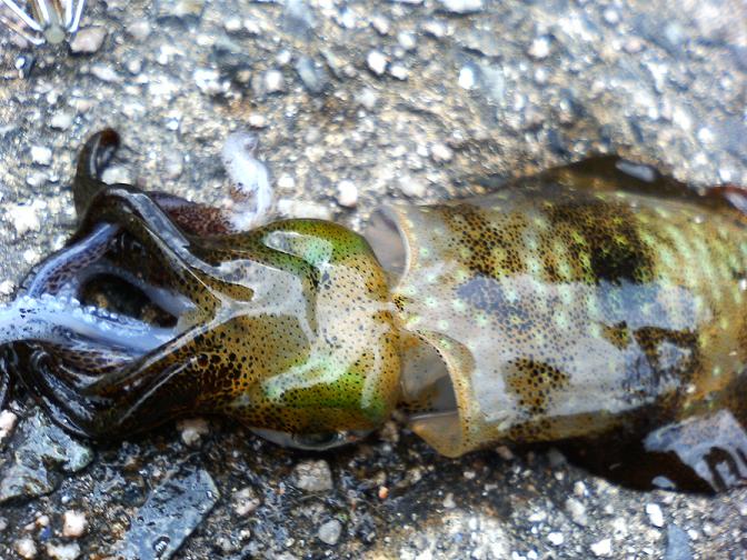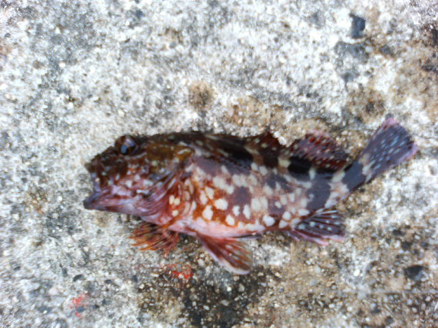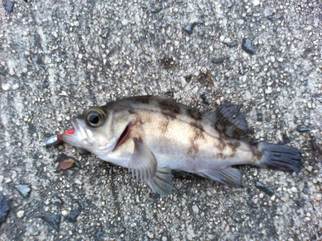 × [PR]上記の広告は3ヶ月以上新規記事投稿のないブログに表示されています。新しい記事を書く事で広告が消えます。 あと1ヶ月半くらいで今年も終わり。家には郵便局から届いた大量の年賀状がある。これを見たら「今年ももう終わりだなぁ~。来年こそはやったるけんね!」と意味もなく奮闘するが、何に対してがんばろうかはっきりせずまた来年のこの時期も同じことを考えるのである。 さて、土曜日メバルを釣ろうと美保関へ。あと今回はサビキもすることに。こないだムーの近くのスーパーで「山陰産アジの刺身」が4切れで500円で売っていた。ちょっと高すぎる。買う気がしなかったので今回は自分で釣ってくることにした。(ムーは住んでるところは山だからなぁ~。高いのは仕方ないか・・・) 朝マズメ、ソフトルアーで探ったけどダメ。結果はカサゴのみ。 仕方ないのでサビキに変更。ある程度いいくらいのアジが釣れた。仕掛けを入れたらすぐ釣れる、というのも久々にやればそれなりにおもしろい。 午後3時くらいになったので再びメバル狙い。底のほうをリトリーブしたらやっと1匹釣れた。 その後も同じように探ったがヒラメの小さいのしかこなかった。 そしてリトリーブした仕掛けを巻き上げようとしたら、 足元からビューンとカサゴが出てきてワームに食いついた。 この釣りもおもしろいなぁ。よしこの釣り方で今日は楽しもうと狙い変更。 足元に落としてチョンチョンと誘うと、おもしろいほどカサゴが出てくる。 家に帰り刺身にした。モチモチとした食感でなかなかうまい。 と今回はなんだか変な釣りです。あと気持ち悪いハゼのような魚もたくさん釣れた。体に青や紫の斑点がある。あれはなんだろう・・・。(気持ち悪かったので写真はナシです。)