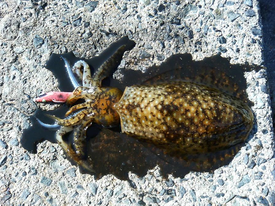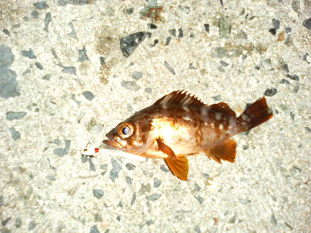 × [PR]上記の広告は3ヶ月以上新規記事投稿のないブログに表示されています。新しい記事を書く事で広告が消えます。 今日は非常に冷え込んだ。会社に着き、車から出ると さむ~~い!! これから海釣りをするときもジャケットが必要になってきますね。 さてさて、仕事が始まると同僚がさっそくムーのところに釣果を聞いてきた。 「ムー、どうだった?僕はまったくダメで小さいタコが1匹かかっただけだったよ。まったく。」 「ムーはなんと今回は大漁でした。胴長30cmが釣れました!」 「なぬぅぅ~~い?まったくどこで釣ったんだい?」 「美保関ですよ。」 「え~。僕もそこに行ったけどムーをまったく見なかったよ。何時ごろ?」 「昼からです。」 「僕は朝だったのに、まったくまったく。」 と言いながらまったくやりきれない様子で去っていった。 最近ムーがエギングやりながら考えていることは、いかに餌木の動きに興味を持たせるか。雑誌には2段シャクリやら3段シャクリやら横文字でなにやら意味深長なアクションのやりかたが書いてある。これは基本ではあるが、やはり自分で餌木を動かしてみて、その動きにイカはどんなリアクションをするかを体験するとかなり上達すると思う。といいながらムーも研究中ではあるが。 ほかのエギンガーがやっていない少し変わった動きをさせると、こないだのように(以前のブログ参照)トリハダがたつような経験をする。 とまぁ偉そうなことを言えるのも先週の釣果が良かったから。来週はボーズでまったくまったくと会社を歩き回っているかもしれないが。 こないだ釣ったデカアオリ。さばくと白子と卵を持っていた。ゆずを少し利かせてすまし汁にした。これがすこぶるうまい。もしかしたらこれから新子になったであろうアオリさんたちに「申し訳ない。ただムーはこれ以上ないくらいおいしそうに食べてあげるけんね。」と心で何度も叫びながらいただいた。 ちなみに同僚の情報によると、美保関ではヤリイカがあがり始めました。アジの泳がせ釣りです。 PR 昨日の釣果から一晩明けて、 昨日は師匠と釣りの話で盛り上がり、少し飲みすぎました。師匠の話の中で、 「釣れても釣れなくても雑誌などの情報にまどわされず自分がここだ!と決めた釣り場に1年以上は続けて通うこと!」 という言葉をいただいた。確かに何度も通うとその海の状況や海底がどうなっているかなどが分かってくる。 ところで、金曜の夜の話。(エギングの話が先になってしまってメバルの話が遅くなった。) 今年初めてのメバルゲームに挑戦。メバル用ソフトルアーとジグを購入。 まずはジグから。中層に浮いているのはいないかとゆっくりリトリーブしたが反応なし。 それから海底を丁寧に探ってると、 ググン! とアタリが。今年初のメバルゲット。(小さいですが。) その後ソフトルアーにかえて、2匹釣れた。 その日は3匹だけでしたが、初メバル、十分に楽しめた。 シーズンはまだまだ先。これからが楽しみ。 連休1日目にエギングを満足し、連休2日目は紅葉でも見に行こうかなぁ~、と眠りについたが、 なんと夢でエギングして大物を釣り上げた夢を見てしまったんですねぇ~。 目覚めたときには気持ちはもう釣り一色。これはもう行くしかありません。 途中に紅葉も楽しもうと高速道路を使った。紅く染まり始めた蒜山高原や大山近くの山々がなんとも美しい。 正午にいつもの場所へ着き、釣り開始。 すがすがしい晴れ空と風が気持ちいい。その途端信じられないことが・・・・・・・。 2、3回しゃくった餌木を見つけたのか、体を黒く変化させた小型アオリが30匹ほどどわぁ~~っと浮いてきて、エギの方向めがけて全員前ならえ!!のように、やや緊張を保ったまま整列している。(これうそじゃありません。大げさにも言ってません。) 思わず 「わぁ~~~~」と声をだしましたね。なんと言うか水に浸かってしまったグレムリンが異常繁殖するような光景。これはうれしさを超えて気持ち悪さを感じた。今までこんな経験したことがない。しかし気持ち悪いと言ってられず、すかさずシャクり。 そのなかの3杯くらいがエギに付いてきて1杯がムーのエギの囮に。 それを見たのこり29人のイカさんは「これは危険だ!ただちに避難警報を発令する!」と云わんごとく、沖のほうに逃げって言った。 たかが3分くらいの出来事でしたが、なんというか「空前絶後」とはこのことかという気がした。 だけど、それを超えるようなことが起きた。 底をとってしゃくった途端、7年ほど使っている愛用のリールが「ジーー!」と鳴った。明らかに根がかりとは違う。しかもラインを見ると右左に揺れている。 これがなかなかあがってこない。ここで焦ってはだめだと自分に言い聞かせゆっくり寄せて引き抜いた。 横で同じくエギングをやってた兄ちゃんが「でかいな~」と500mlのペットボトルを横に置いて比べたら、それをはるかに超える大きさ。兄ちゃんと話をもう少ししたかったけど、もう頭はパニックでほとん